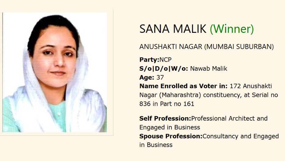 Sana Malik(Nationalist Congress Party(NCP)):Constituency- ANUSHAKTI NAGAR(MUMBAI SUBURBAN) -